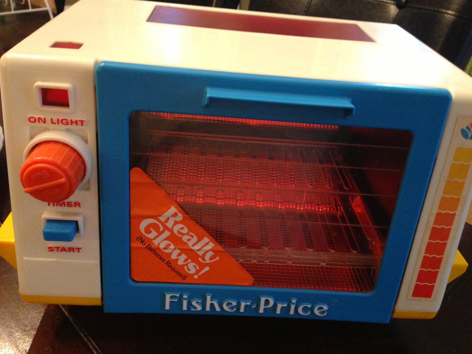Another one of my favorite scores is this vintage Fisher Price toaster oven toy. This one still has its label on the front and is in pristine condition, with a working light and all! Love this find.